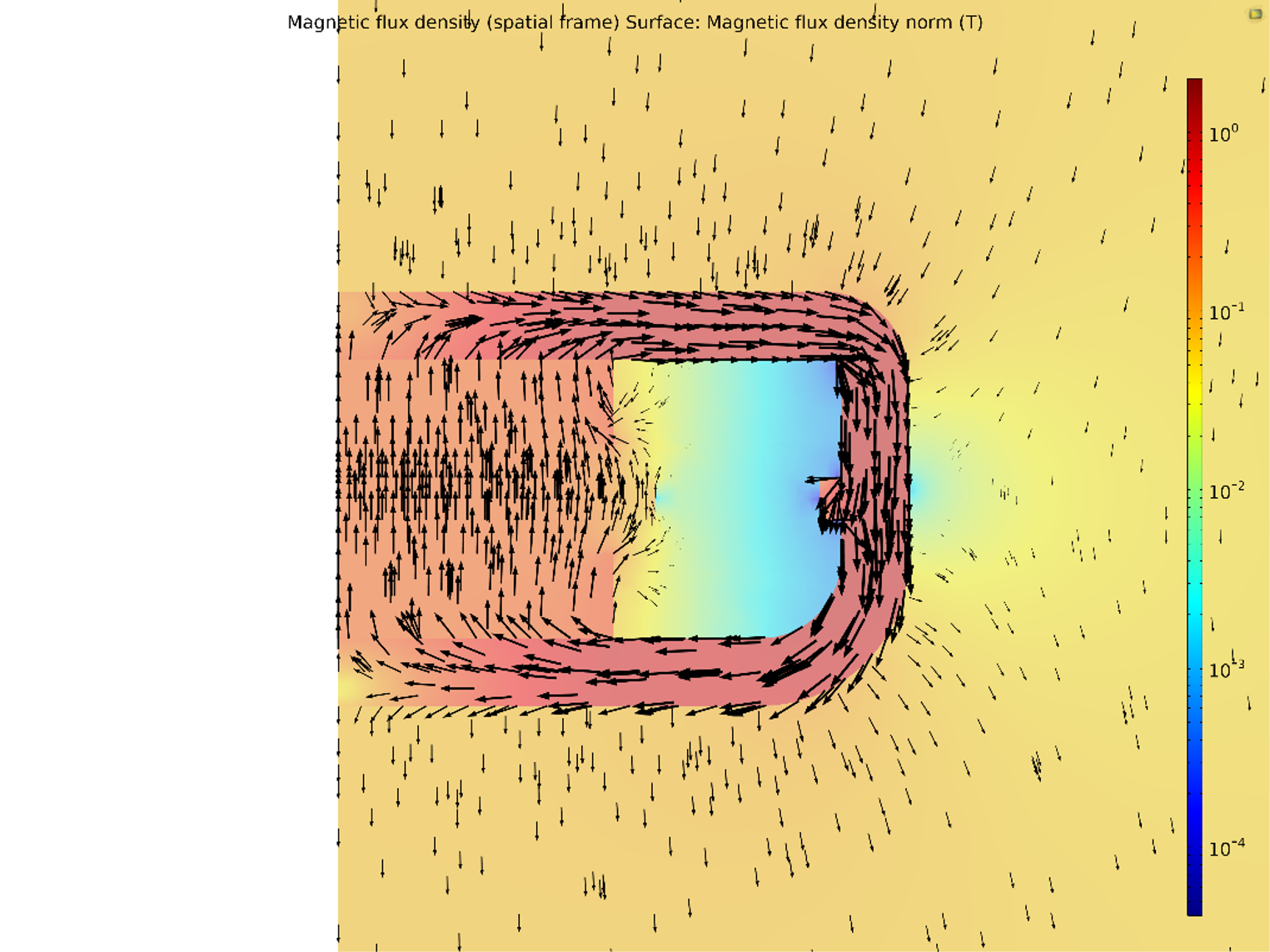 "To analyze this interaction, we created a model in COMSOL® to analyze the interference of the magnetic flux due to the external magnets with the magnetic flux generated by the BA receiver used to displace the armature. The simulation results showed that when an additional magnetic flux is added by the external magnet to the magnetic path inside a receiver, the flux changes the magnetic reluctances of the entire magnetic circuit and causes the receiver magnets to demagnetize." (Figure 3)
